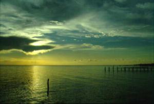 |  Die Idylle täuscht: Das Foto entstand auf der Insel Islas Mujeres | Denn diese Stadt am caribischen Meer war vor 20 Jahren noch ein Fischerdorf mit gerade mal 120 Einwohnern, bis die herrliche, tiefblaue Lagune zwischen der Landzunge und dem Festland von der us-amerikanischen Tourismusindustrie entdeckt und per Computer und Reißbrett in ein Moloch mit hunderten von durchweg teuren Hotels, Restaurants und Souvenierbuden verwandelt wurde. So verwundert es nicht, daß die dienstbaren Geister am Flughafen und anderswo in aller Ruhe den Strom der sonnenhungrigen Besucher aus den USA und Europa abfertigen, geht es ihnen doch um vieles besser, als ihren Vettern im Hinterland oder in Chiapas. |