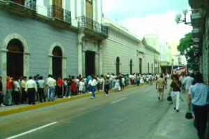 Mérida war und ist eine reiche Stadt. Die Zeugen des wirtschaftlichen Aufschwungs, der durch die Ausbeutung der Landbevölkerung und dem Sisal-Export nach Europa möglich wurde, gehören zu den ältesten Bauwerken Méridas: aus dem 16.Jahrhundert die riesige Kathedrale, der Bischofspalast, der Palacio Muncipal und die Casa de Montejo, aus dem vorigen Jahrhundert der Palacio de Gobierno. In letzterem kann man eine ganze Reihe historischer Gemälde besichtigen, riesige Ölschinken aus der bewegten Vergangenheit Mexikos mit fahnenschwingenden Siegern, zertretenen Besiegten und verstörten Mayas (allerdings auch einige Exponate des Malers Diego Rivera). |