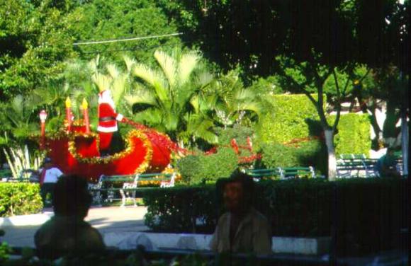 ![]() Die Kleidung von Santa Claus ist recht unpassend in diesem Klima, ansonsten ist der Weihnachtsmann der Blickfang auf dem Zokalo. | |